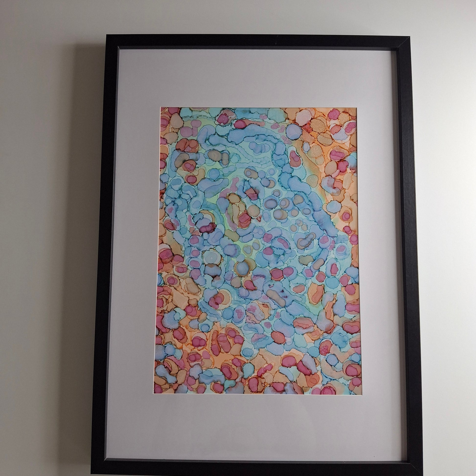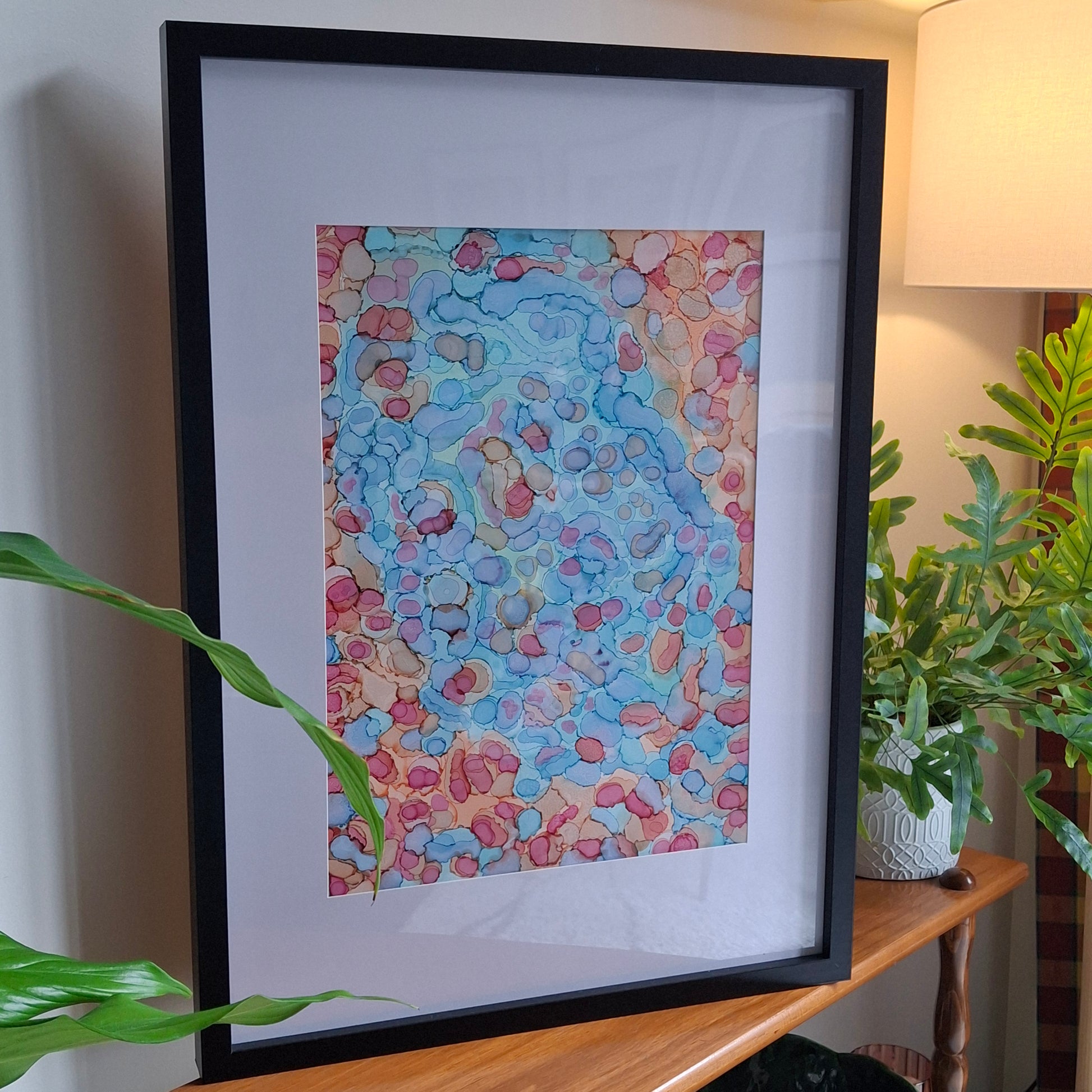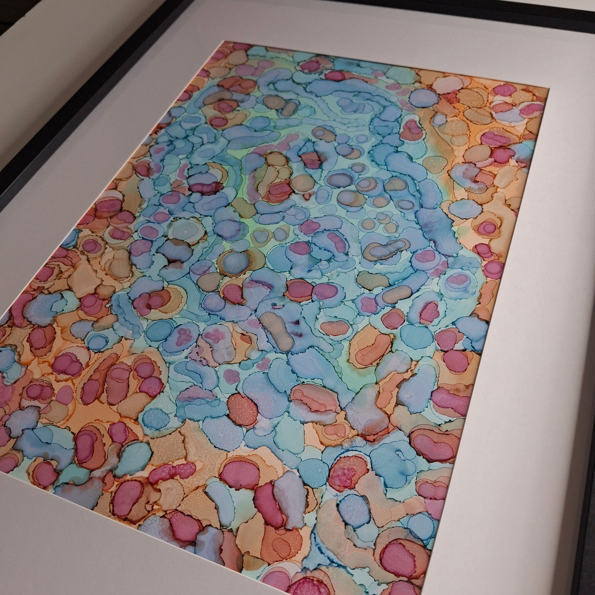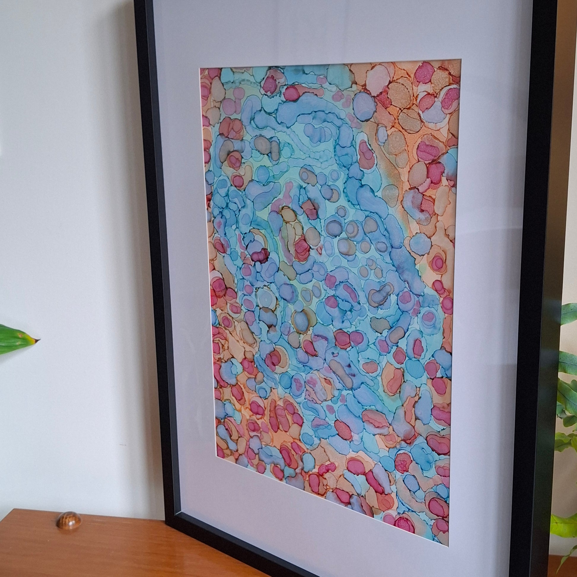 Coral Cay Original Artwork Mixed Blue Green Pink Beige Alcohol Ink A3