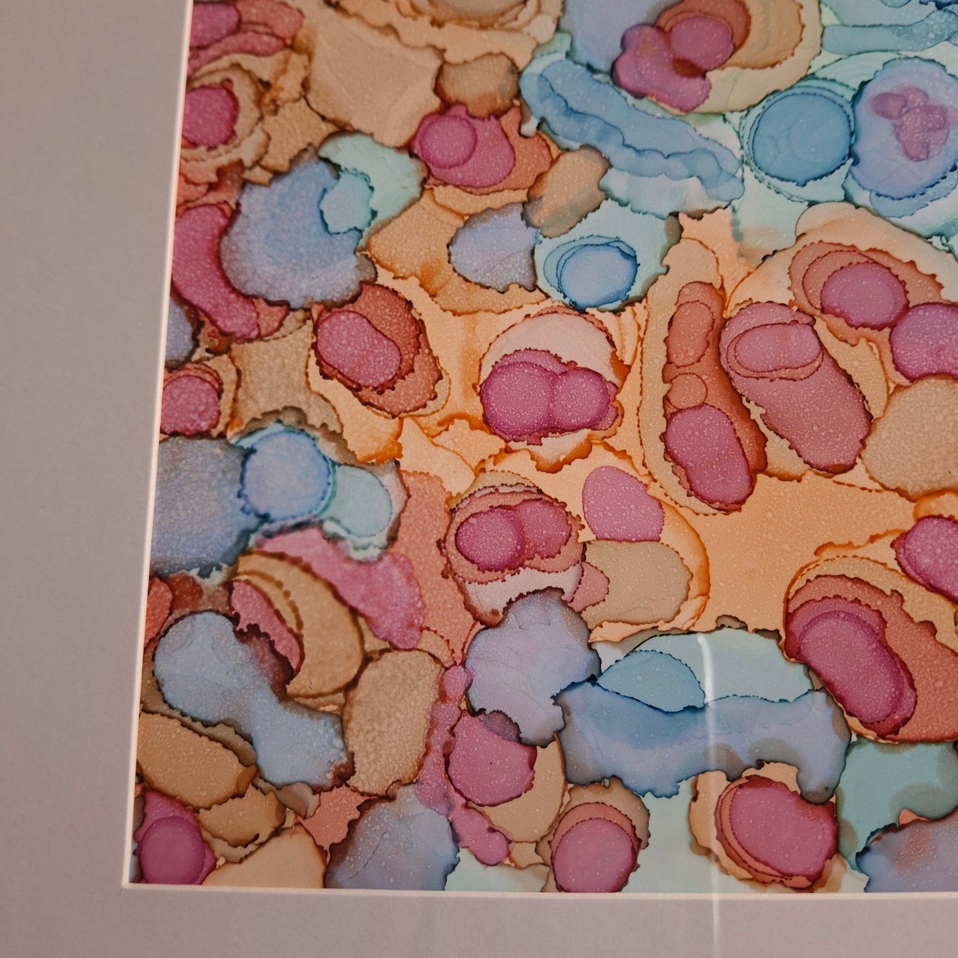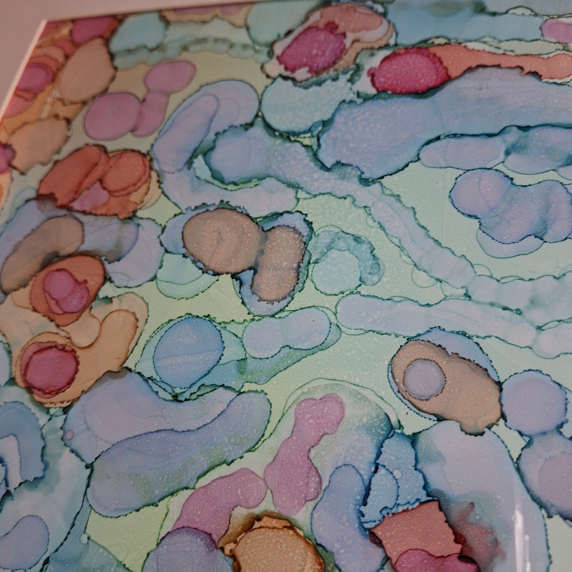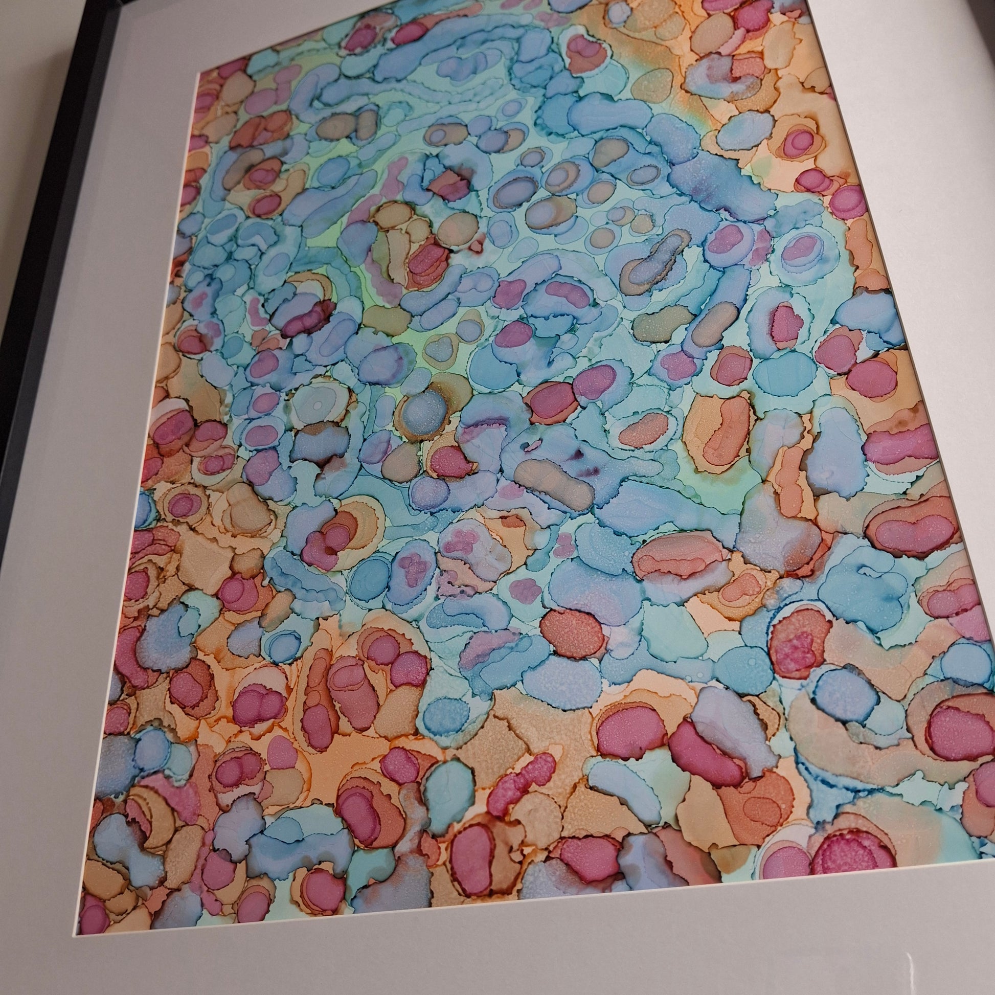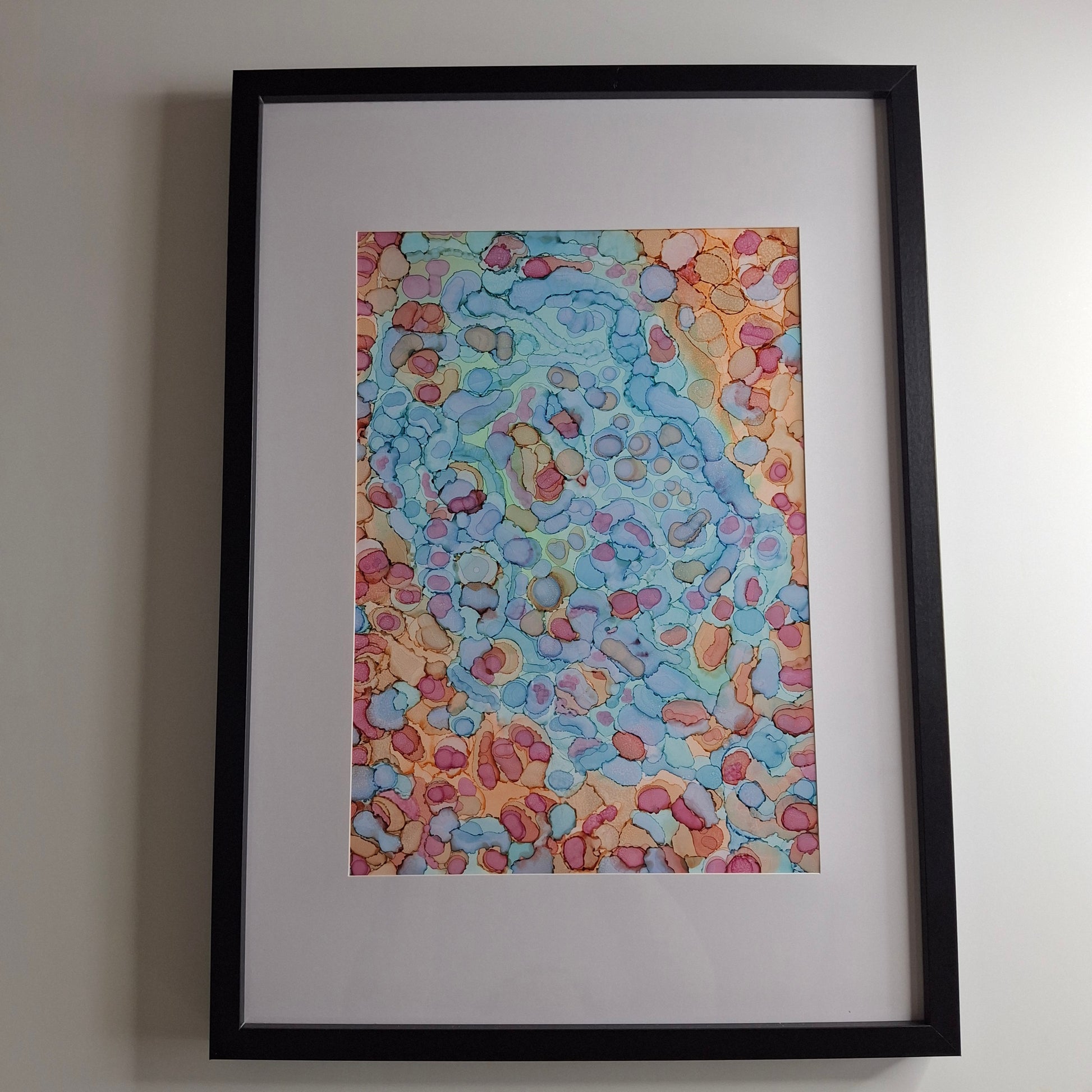 Coral Cay Original Artwork Mixed Blue Green Pink Beige Alcohol Ink A3