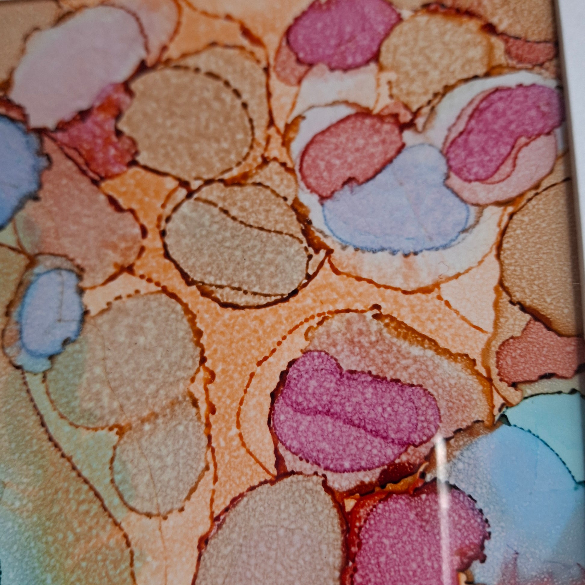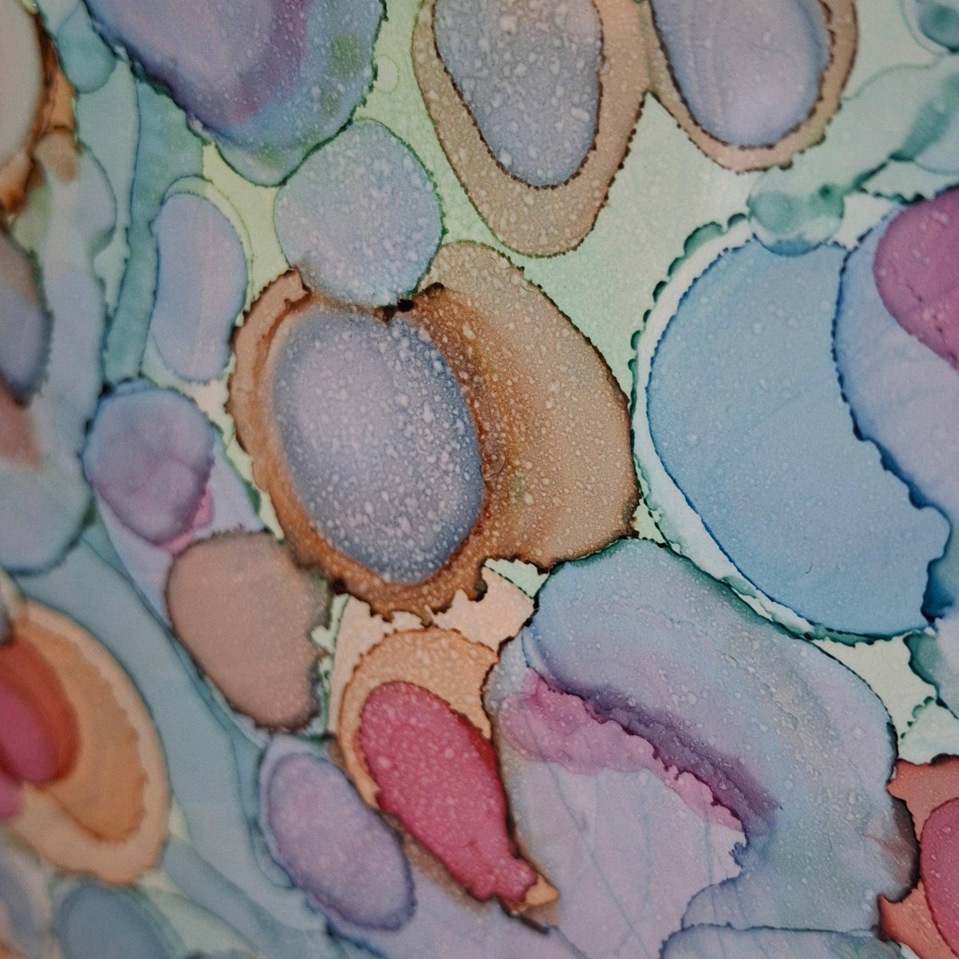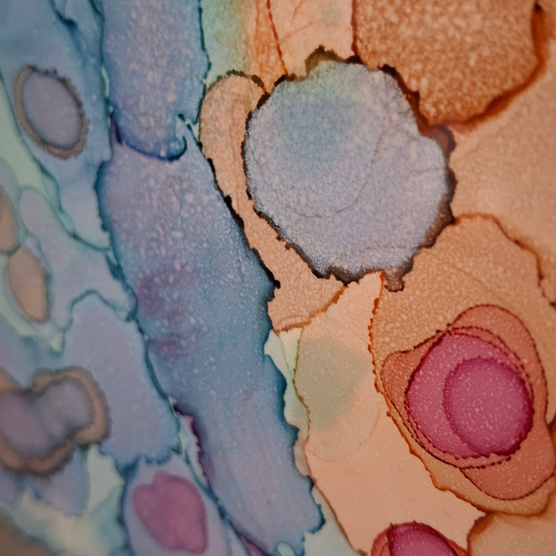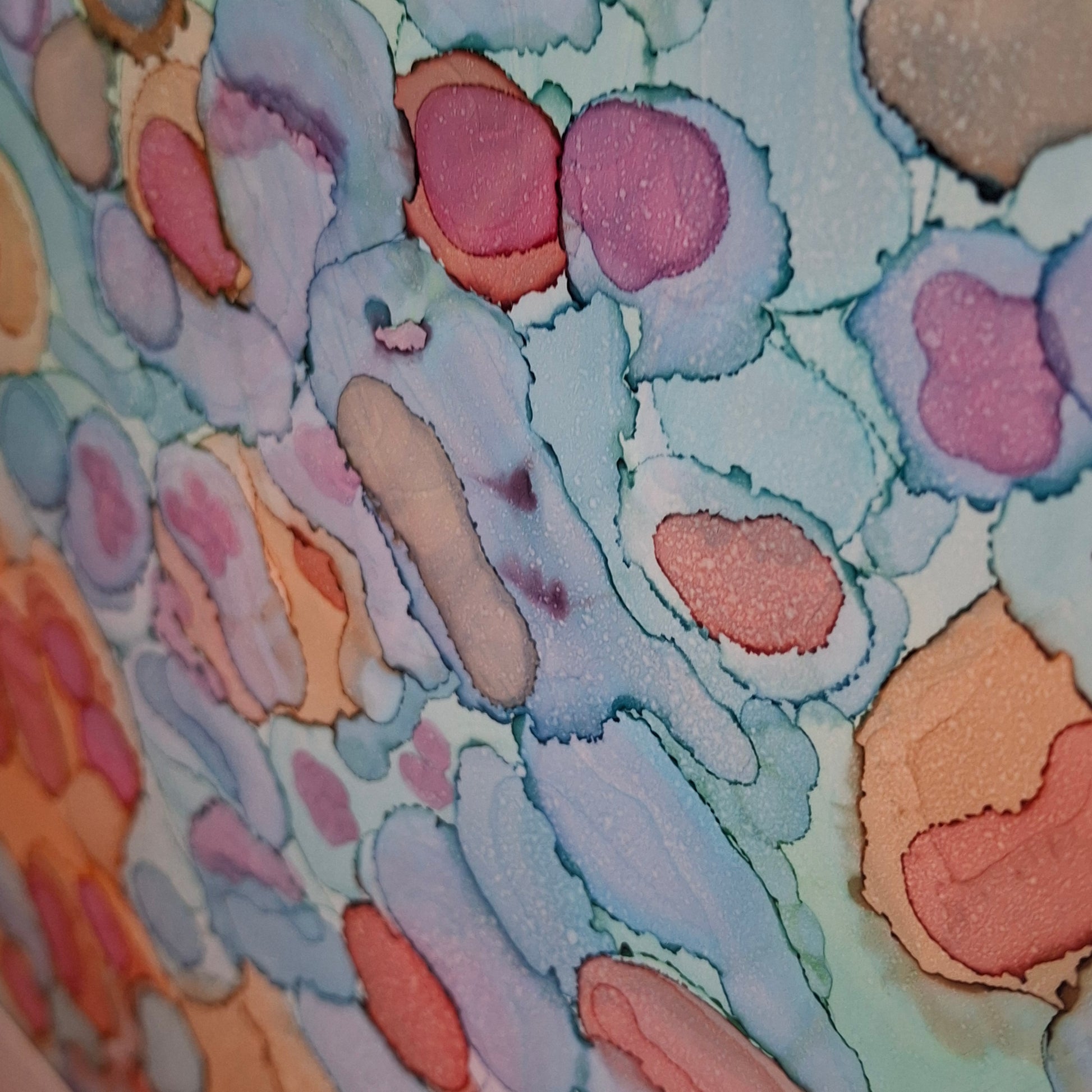 Coral Cay is an A3 original alcohol ink painting by Elizabeth Marshall, part of her series The Sea is My Lover. Inspired by aerial views of vibrant reefs, this piece captures the ebb and flow of the ocean in delicate layers of blues, pinks, and sandy tones. Each organic shape and overlapping wash evokes the movement of water over coral, the hidden nooks of marine life, and the serene energy of a coral cay. The interplay of color and transparency draws the viewer into a tranquil, meditative state, celebrating both the beauty and complexity of oceanic landscapes.