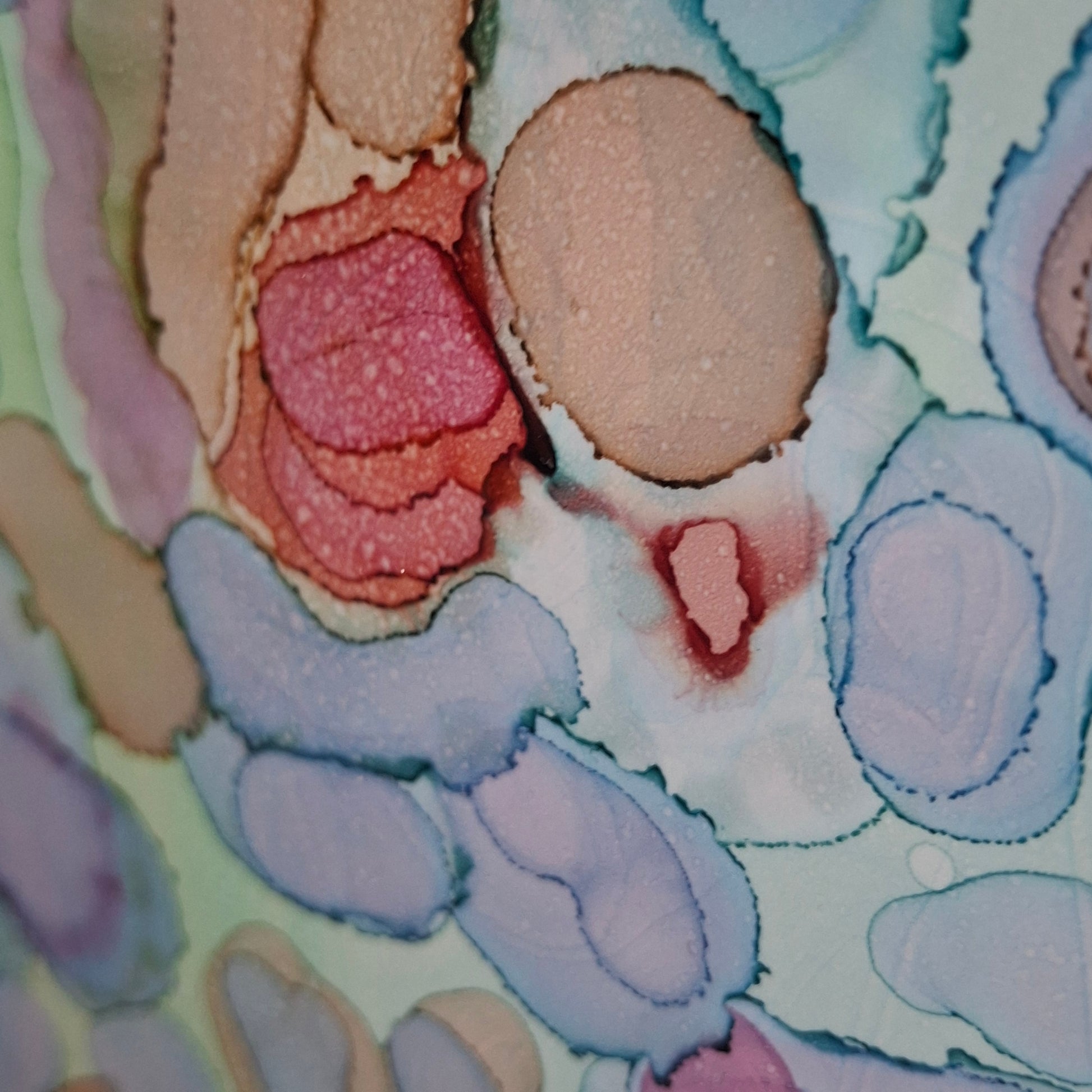 Materials: Alcohol Inks on Yupo Paper. Finished with an acrylic varnish and UV protectant.