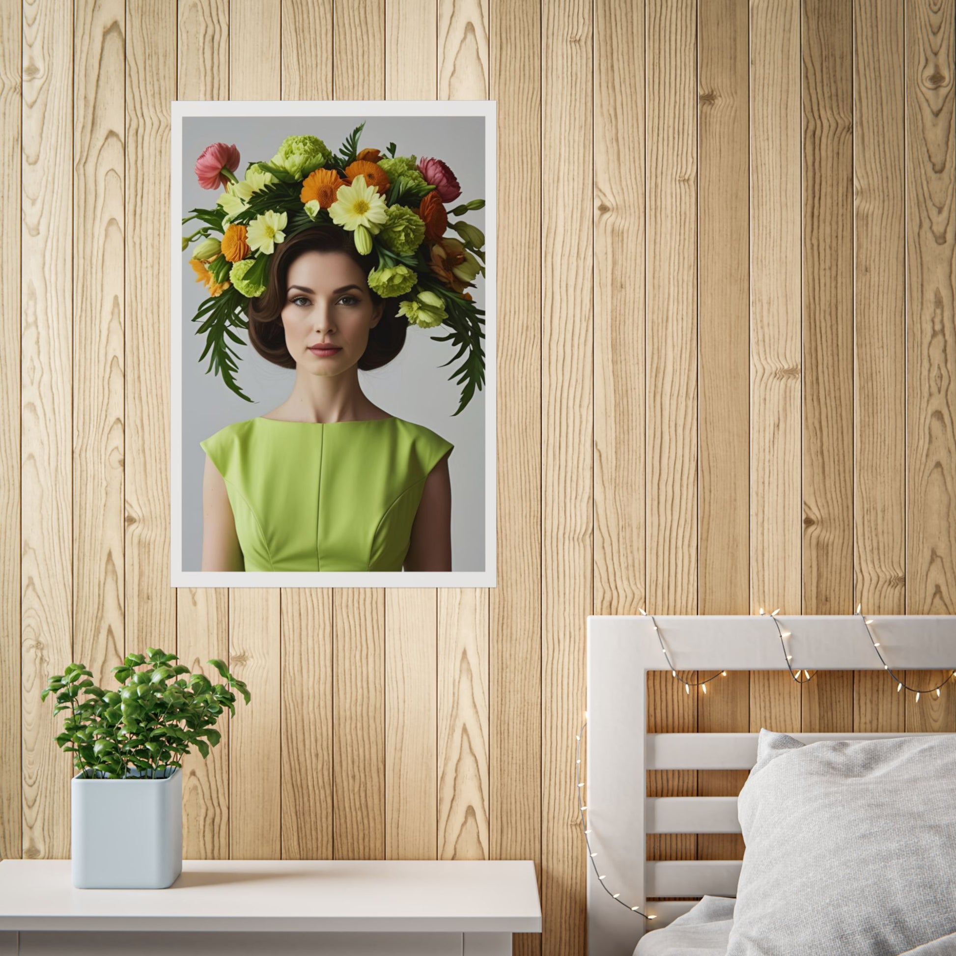 Catherine Art Print Poster Vintage Fashion with Floral Elegance (White Border)