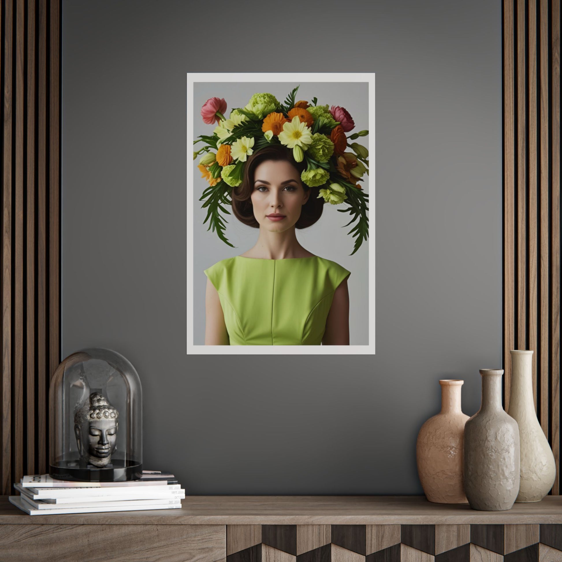 Catherine is a graceful art print poster celebrating timeless elegance and feminine intellect. The artwork features a woman dressed in a 1960's frock, with bold flowers in her hair. Perfect for lovers of retro-inspired décor, this poster brings a sense of beauty and energy to your walls. Printed in Australia with a white border. Easy to frame with off the shelf framing options from major retailers.