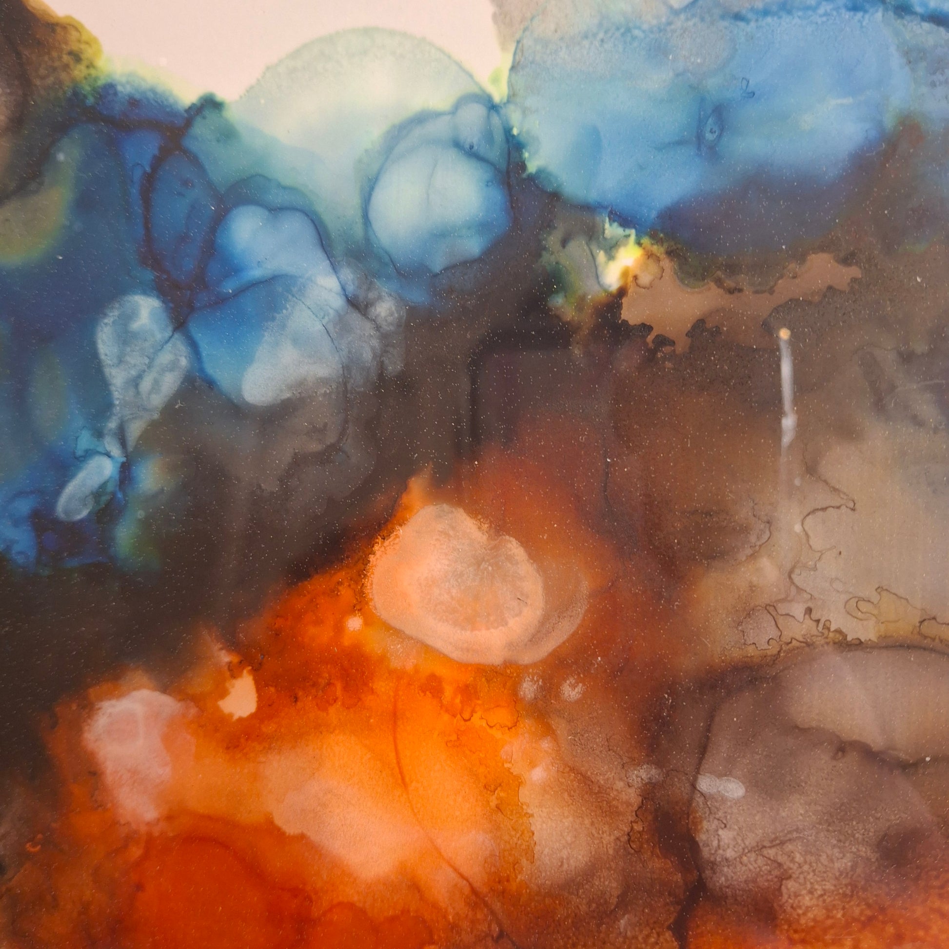 Let your walls speak in colour with Currents of Emotion, an original alcohol ink painting by Elizabeth Marshall. Swirling tones of burnt orange, smoky umber, and oceanic blues dance together in expressive layers—an abstract meditation on the inner tides we all carry. This richly pigmented piece evokes both warmth and turbulence, like emotions rising to the surface through stillness.