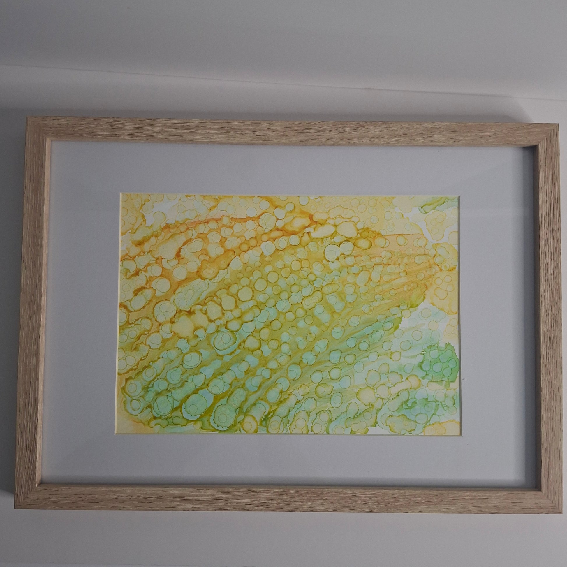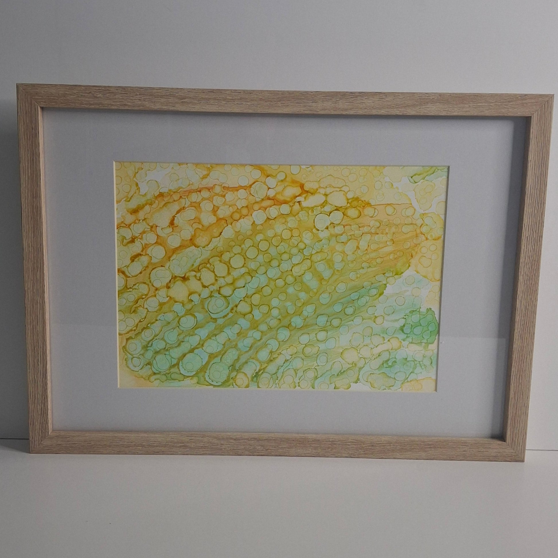 This vibrant abstract artwork, titled Energy, is a joyful expression of emotion, movement and vitality, created using alcohol inks in luminous yellows and fresh greens. Part of the Under the Microscope series, it explores the hidden beauty of cellular patterns and microscopic life, inviting viewers to find wonder in the smallest details.