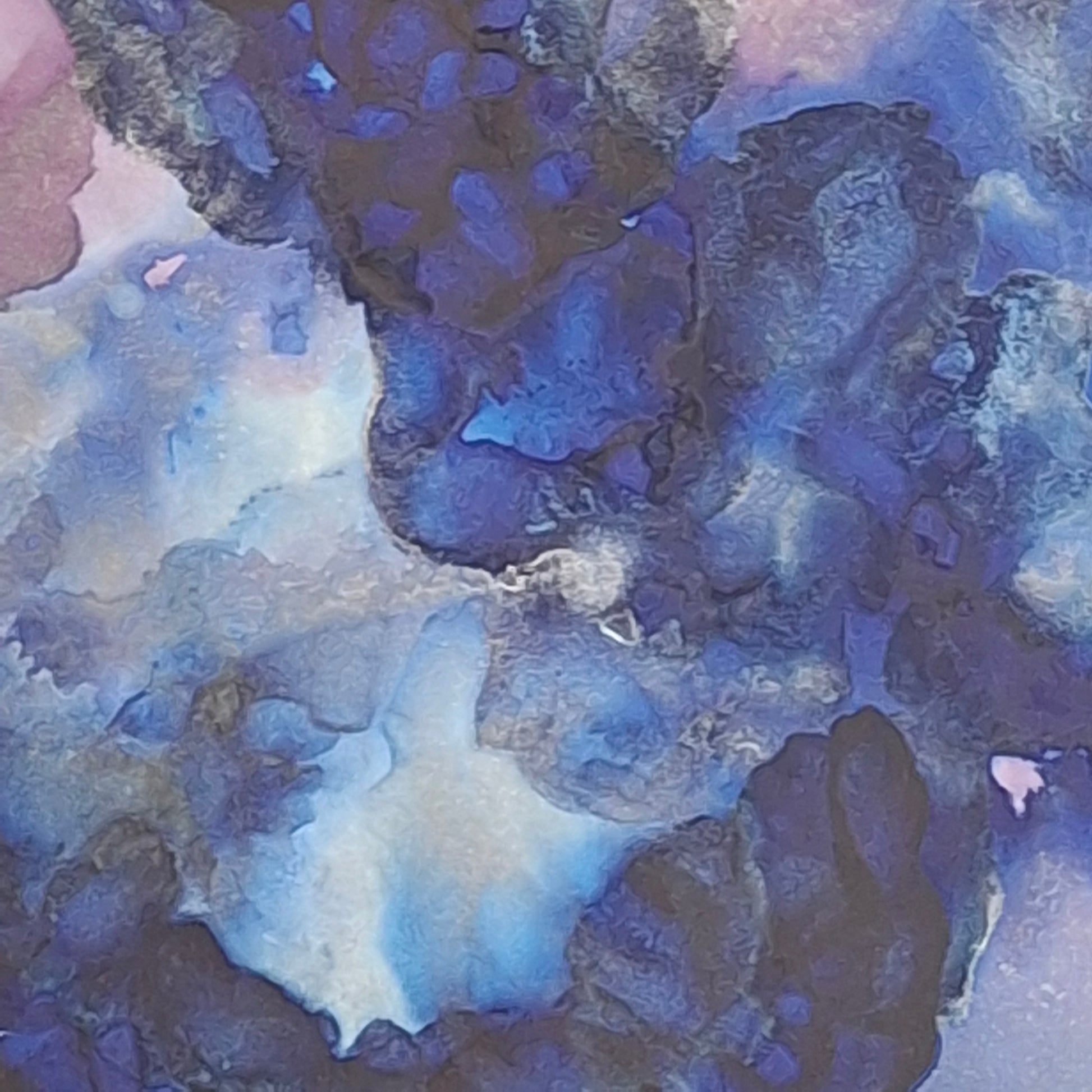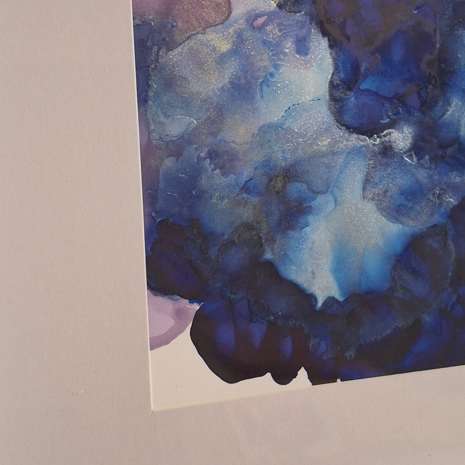 Created using alcohol inks on Yupo paper, this framed piece draws the eye into inky depths and shifting textures – a visual poem to intuition, creativity, and the power of feeling deeply.