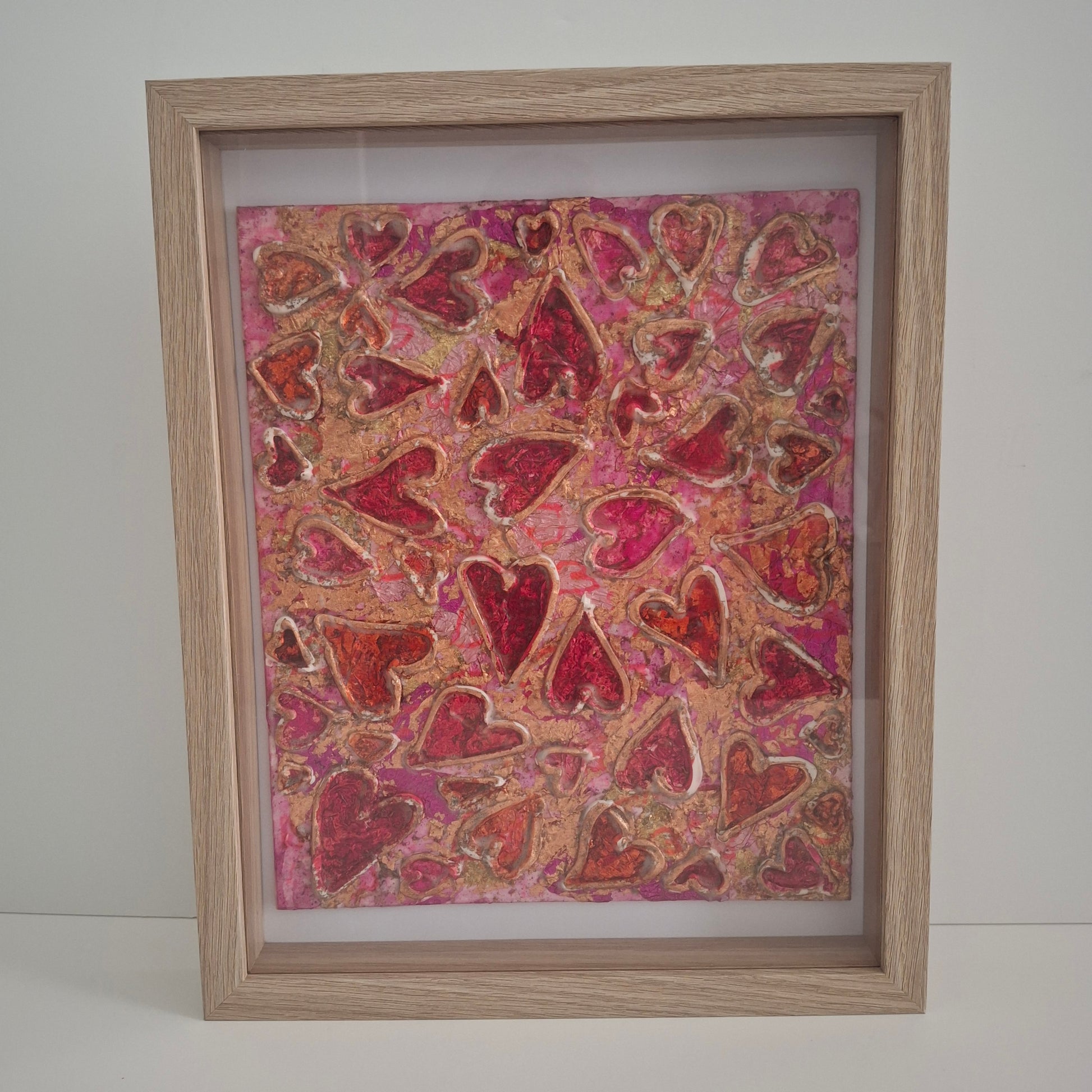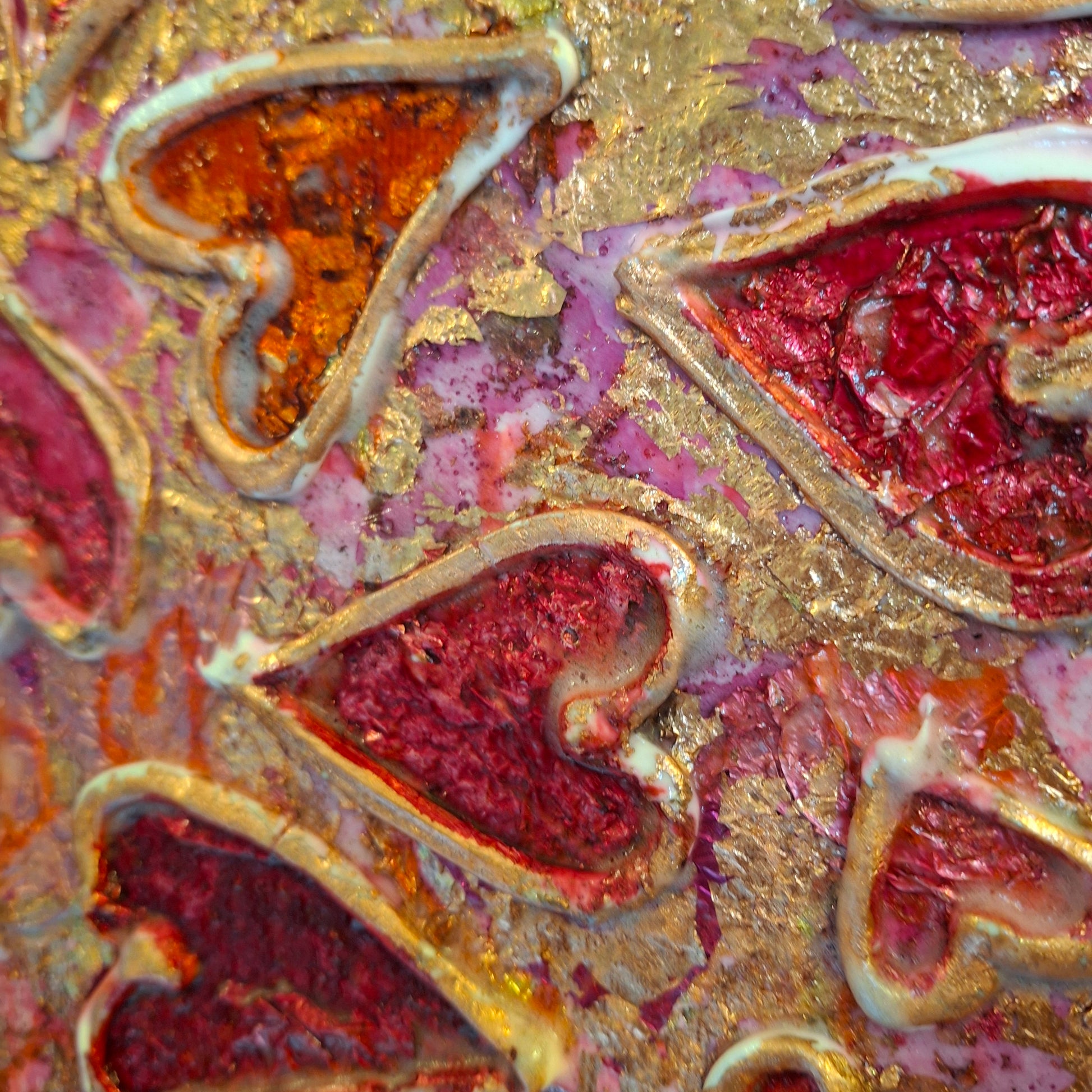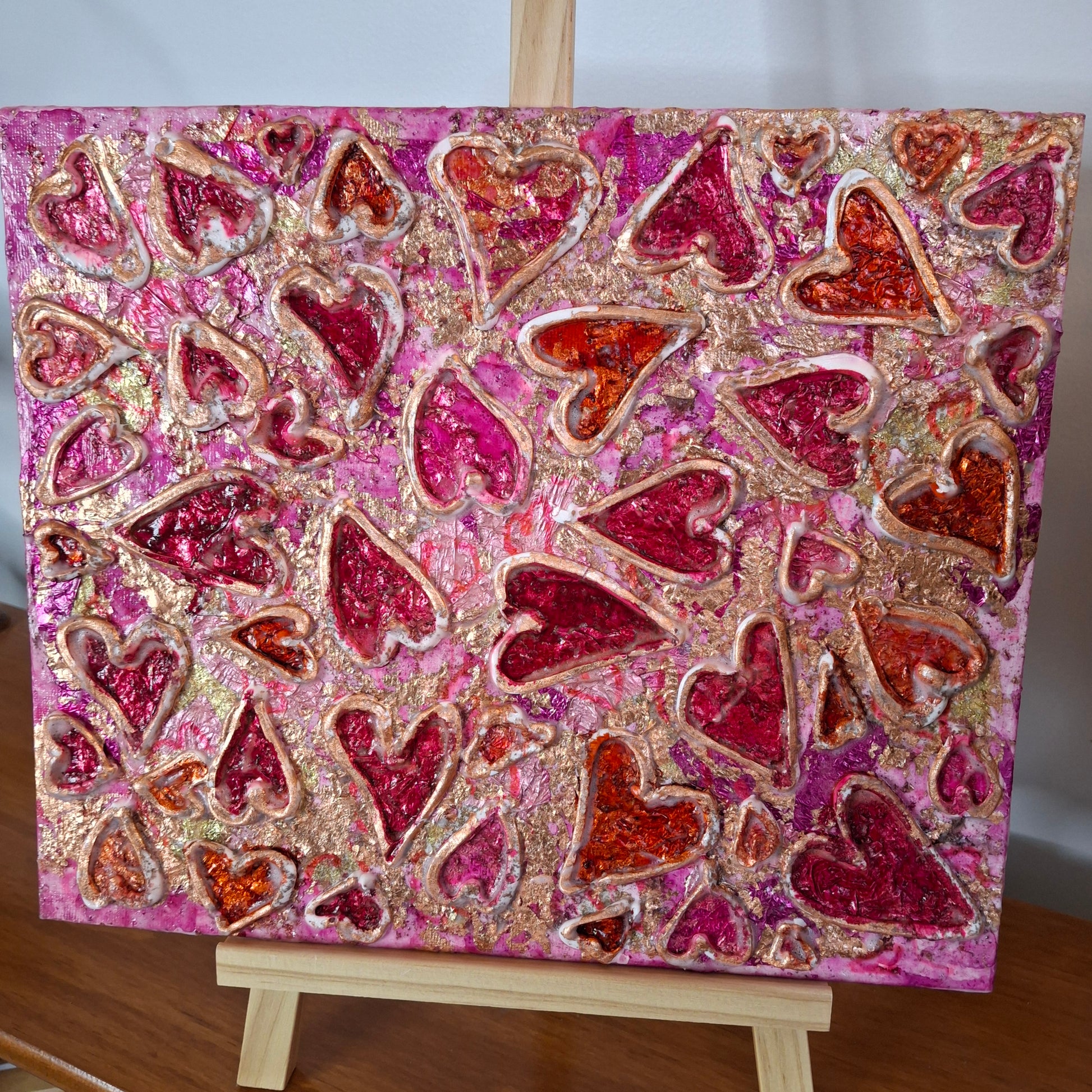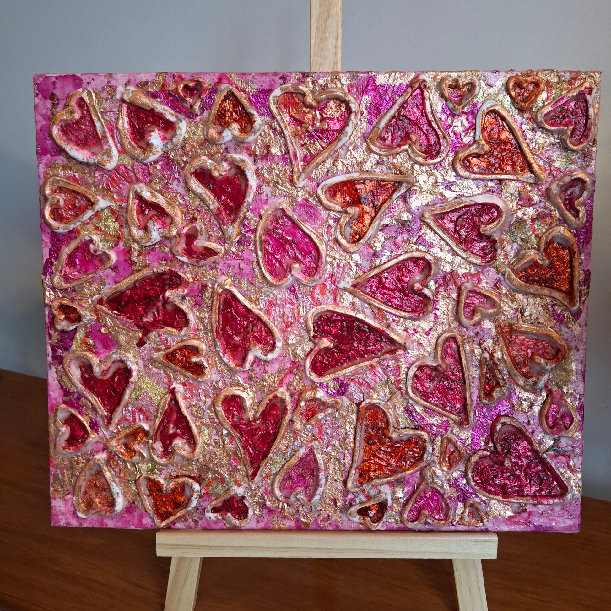 Passion Erupts Original Art Bronze Red Pink Bronze Hearts