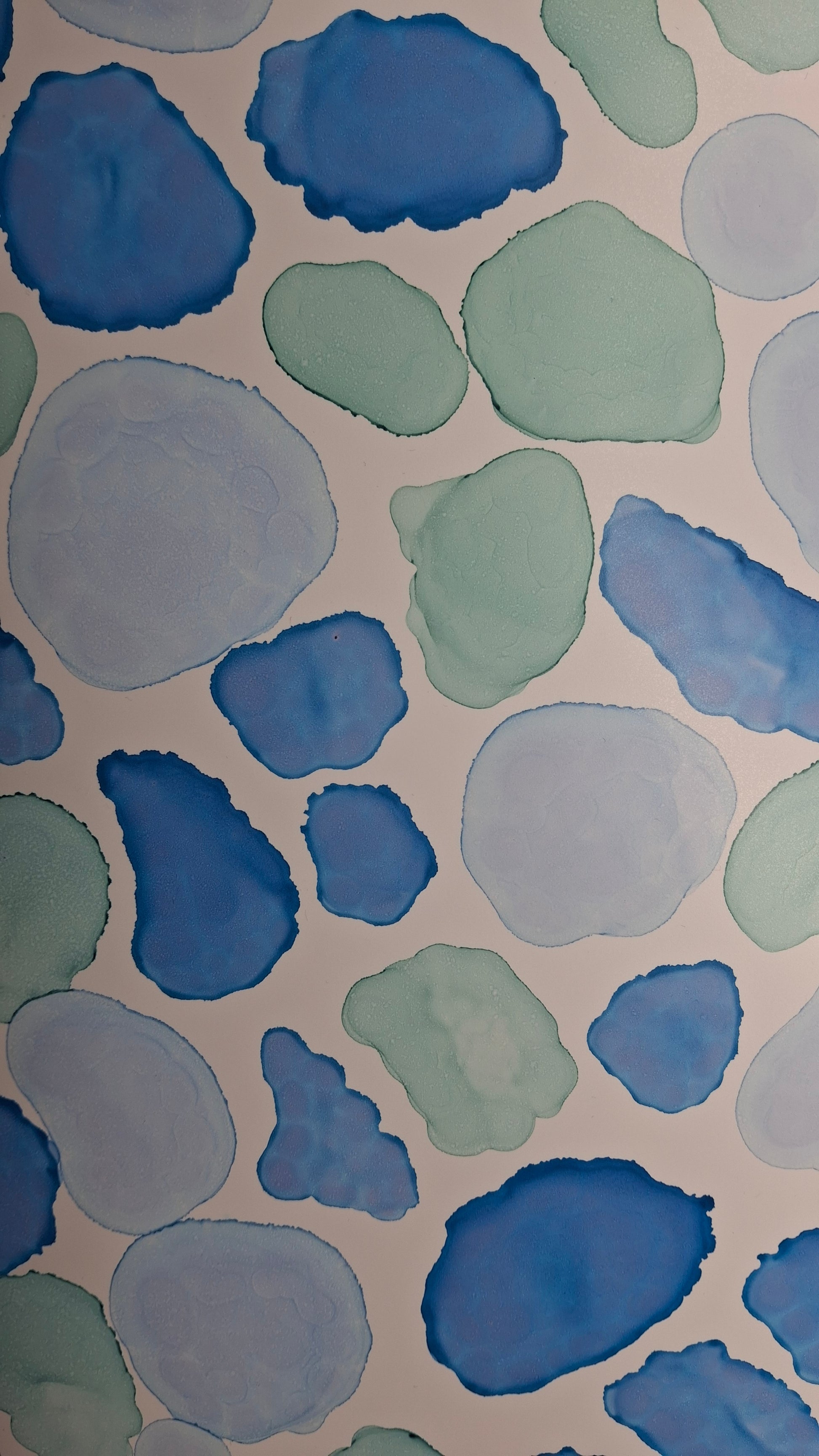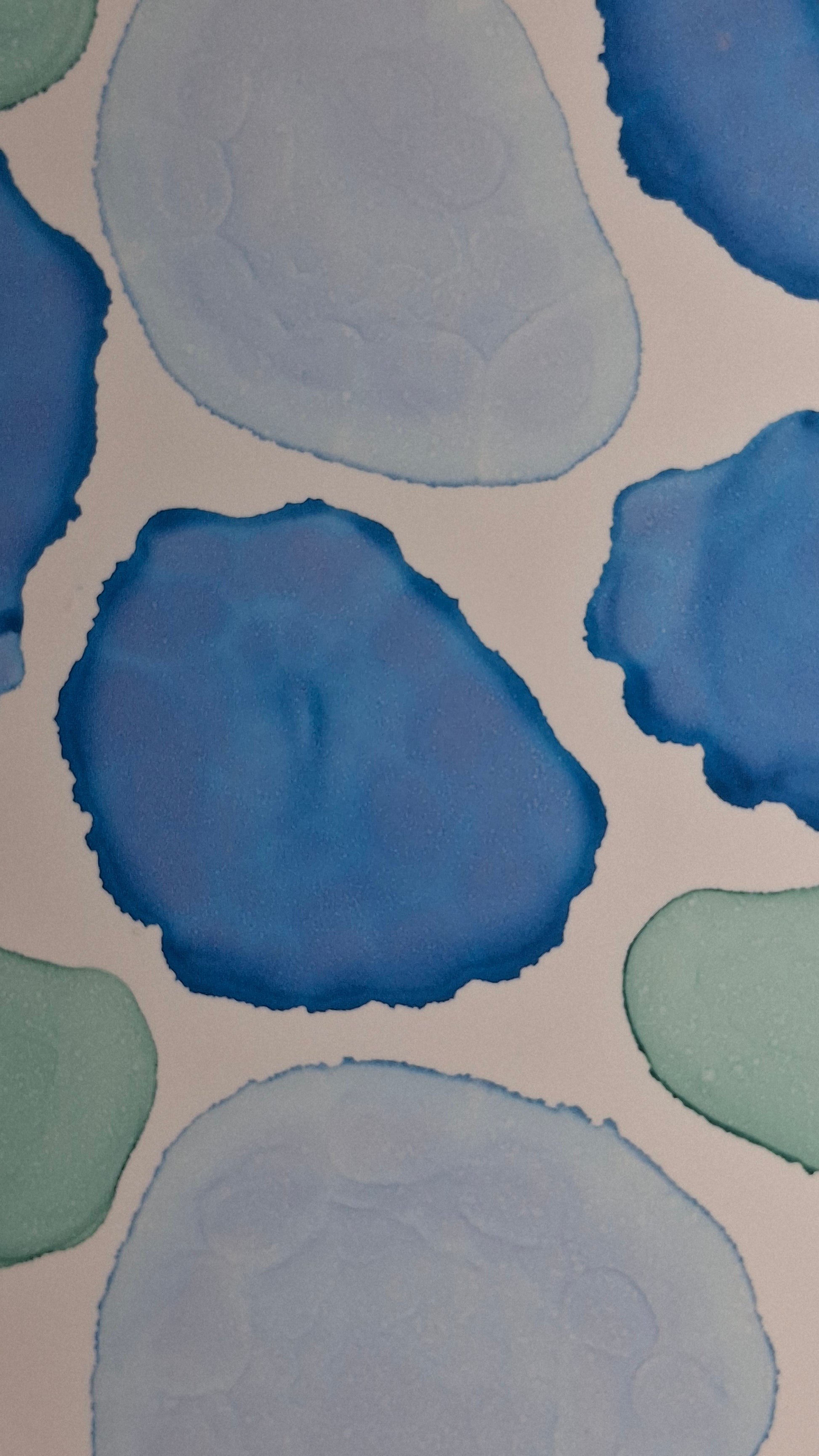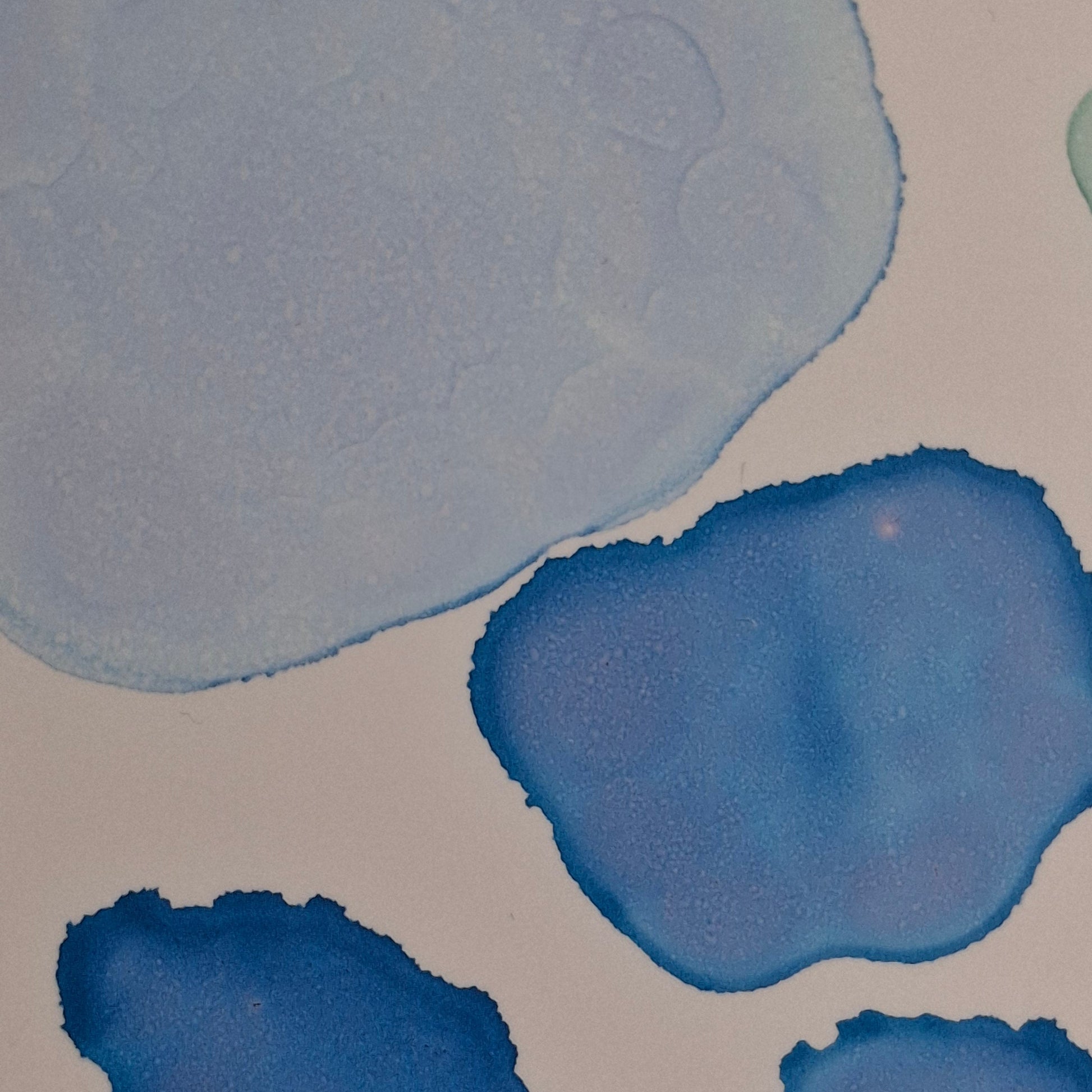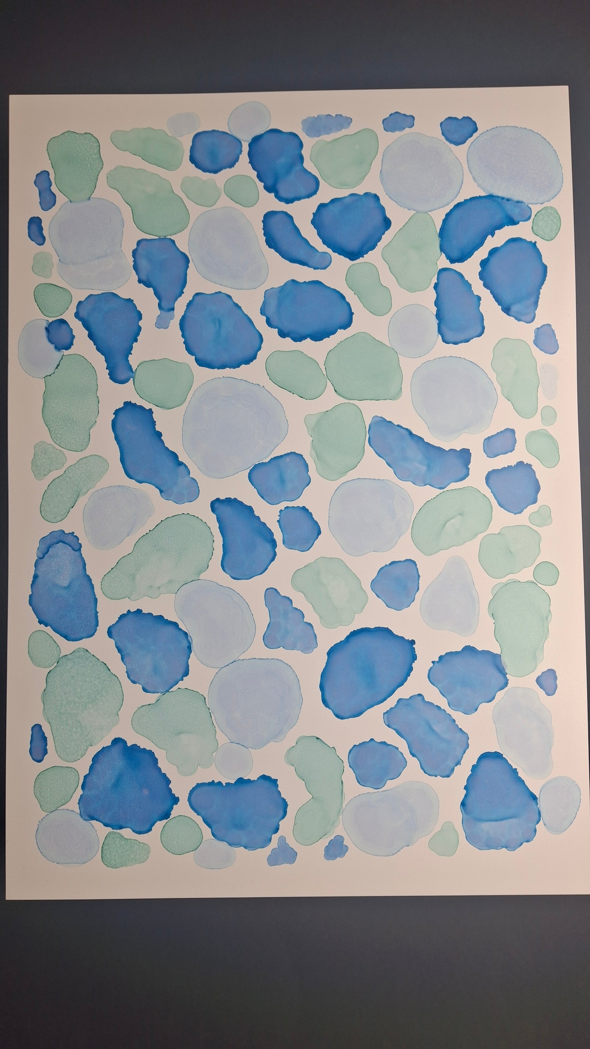 By the Sea is an A3 original artwork created with alcohol inks, inspired by the shapes, movement, and colours found along cold, quiet beaches. Layers of soft turquoise, sea green and deep ocean blue flow together in organic forms, echoing scattered seashells, smooth pebbles, sea glass and tidal pools revealed at low tide. Each shape has been carefully placed to evoke the meditative rhythm of wandering the shoreline, breathing in salty air, and feeling the crisp sea breeze. This piece captures the beauty of still moments by the water, offering a sense of calm and connection to the raw, untamed edge of the ocean.